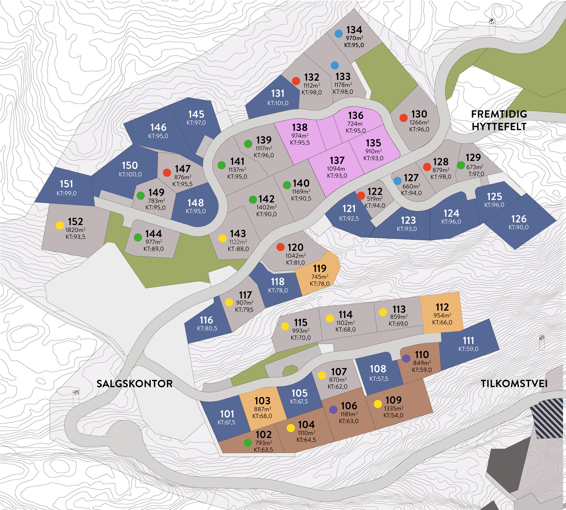 Våre tomter er delt inn i prisklasser som er markert med farger